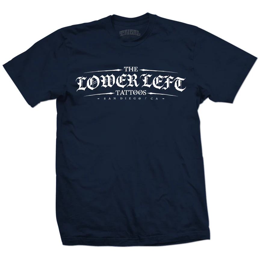 100% cotton Mens tee with “LOWER LEFT TATTOO” print By TRIBAL STREETWEAR.