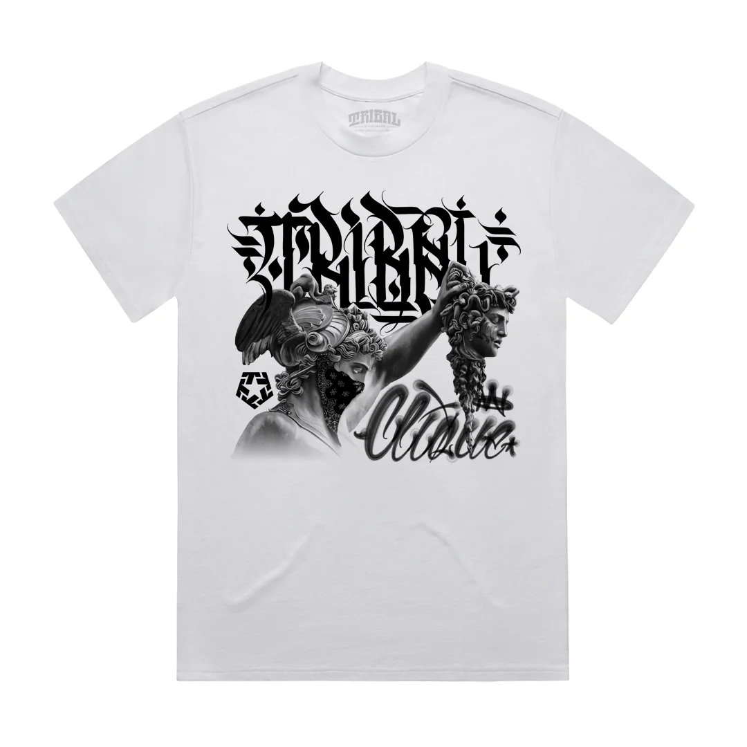 100% cotton Mens tee with âTAKING HEADSâ print By TRIBAL STREETWEAR.